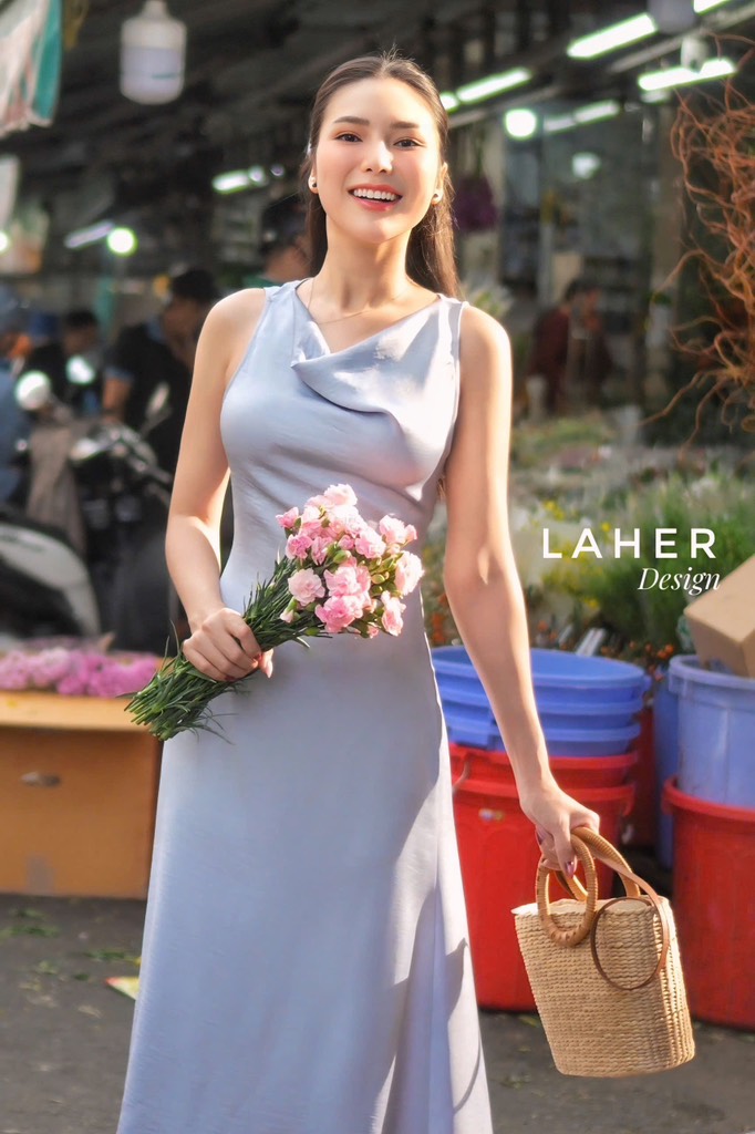 LAHER ĐẦM LỤA CỔ ĐỔ XANH OLIU